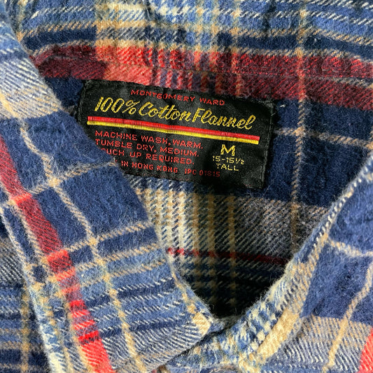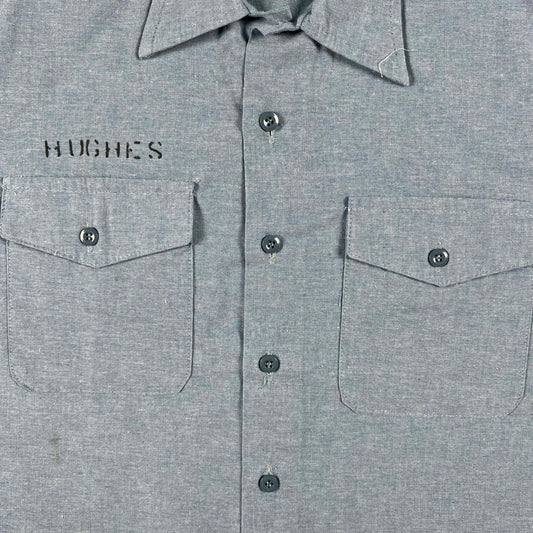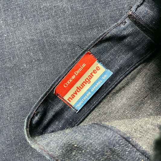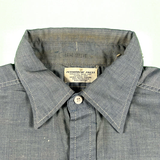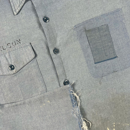 70s Cropped Stenciled Navy Chambray Shirt- L