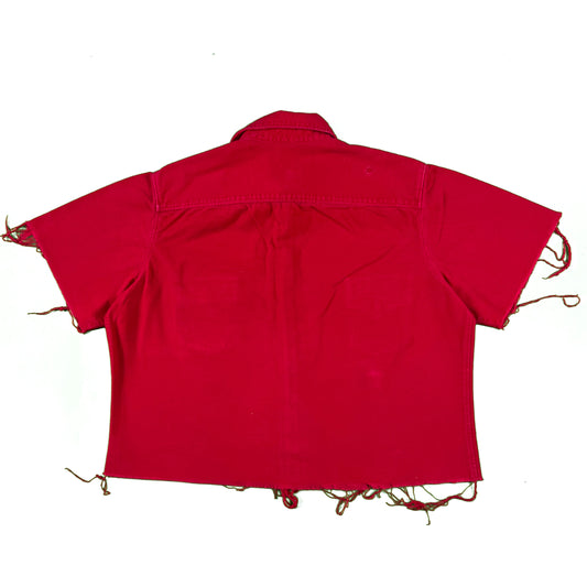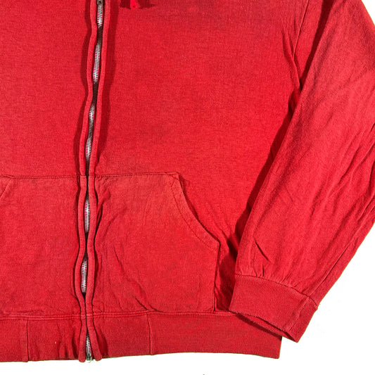 70s Cropped Waffle Lined Red Thermal Hoodie- L