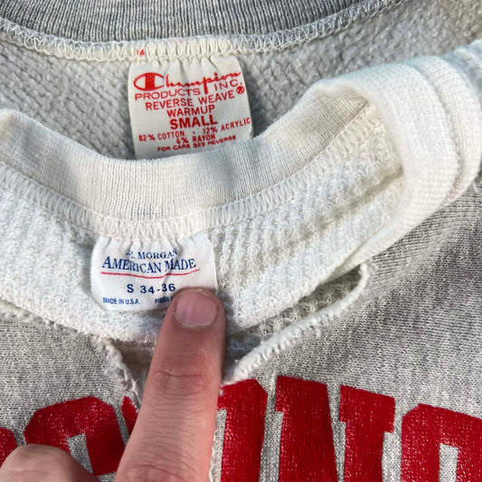 70s Cropped Wisconsin Champion Reverse Weave & Waffle Knit Thermal- S