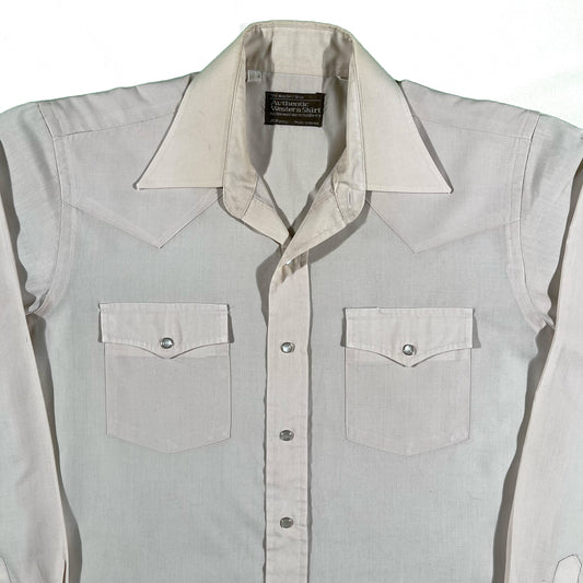 70s JC Penney Cream Western Pearl Snap Shirt- M