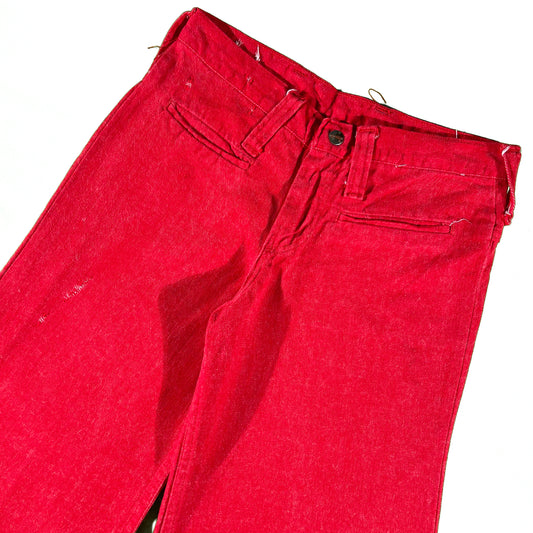 70s Maverick Cherry Red Denim Wide Leg Bell Bottoms- 26x31.5