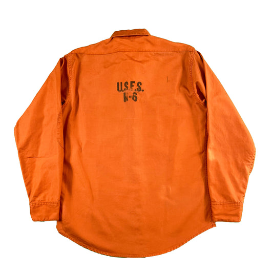 70s Orange Stenciled USFS Smoke Jumper Shirt- M