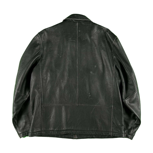 00s Eddie Bauer Patina Black Leather Racer Jacket- L