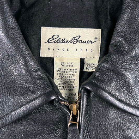 00s Eddie Bauer Belted Back Black Leather Jacket- S