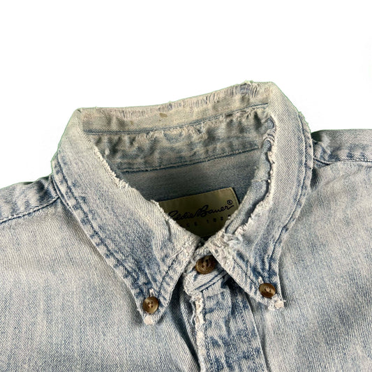 00s Eddie Bauer Cropped & Faded Denim Shirt- M