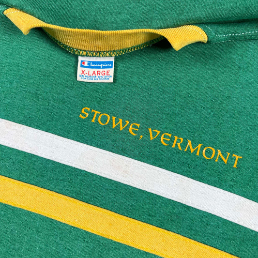 70s Stowe Vermont Champion Blue Bar Tee- L