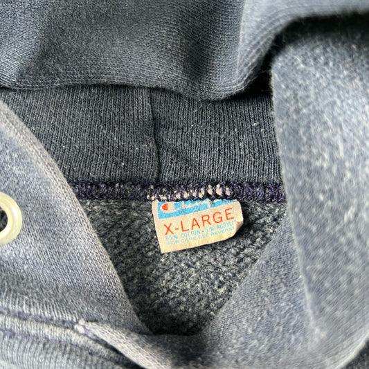 70s Sun Faded Champion Blue Bar Blank Hoodie- L