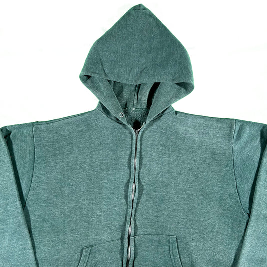 70s Sun Faded Forest Green Zip Up Hoodie- L