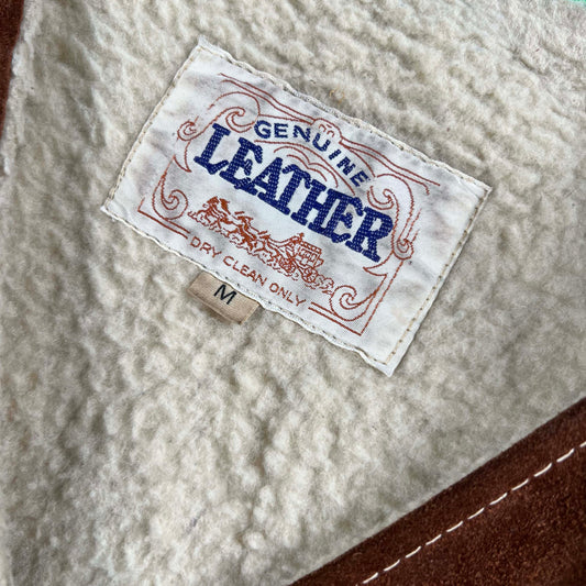 70s Tan Brown Leather Sherpa Lined Vest- M