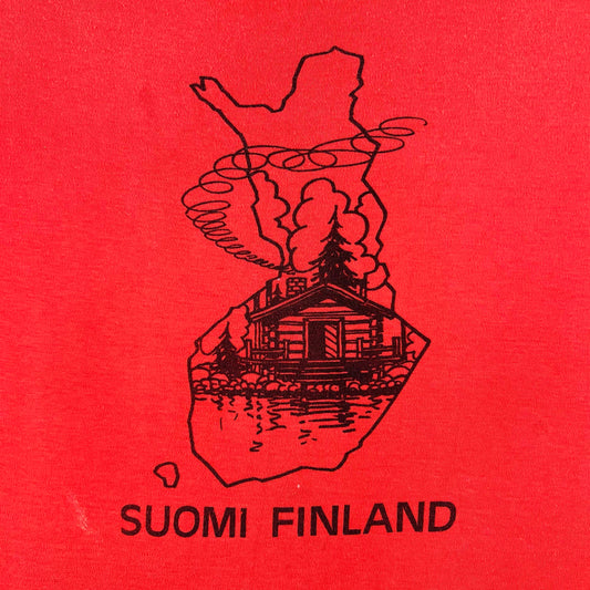 70s Suomi Finland Log Cabin Souvenir Tee- L