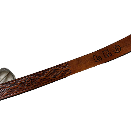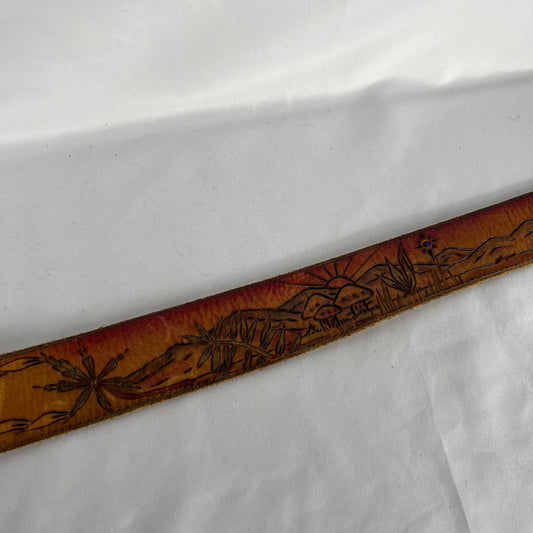 70s Weed and Mushrooms Leather Belt- 30"-32"