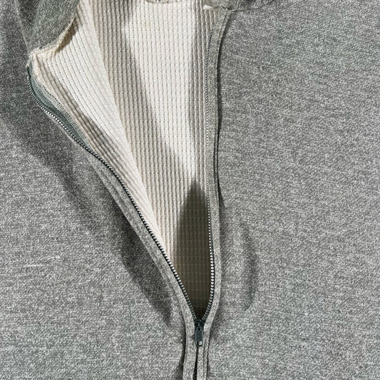 70s Waffle Lined Grey Zip Up Hoodie- L