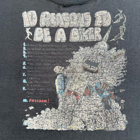 80s '10 Reasons to be a Biker' Faded Black Tank- XL