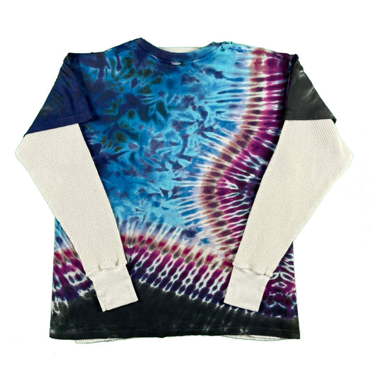 80s Beat Up Tie Dye Tee & 70s Waffle Knit Thermal- M