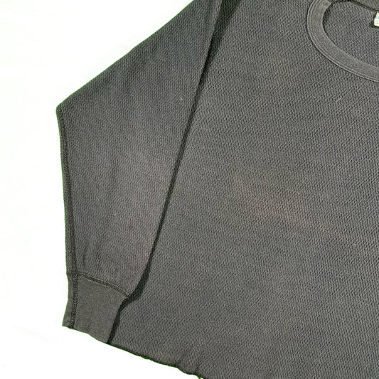 80s Black Boxy Waffle Knit Thermal- S