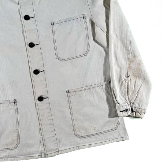 80s Bleached HBT French Chore Jacket- L