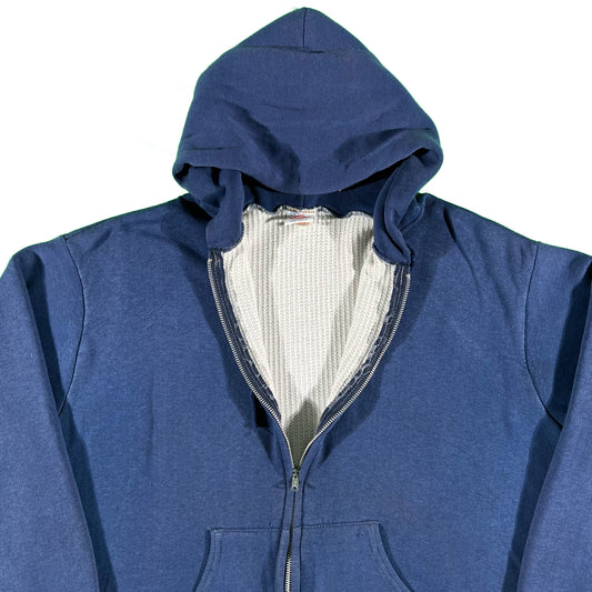 80s Boxy Faded Waffle Lined Zip Up Hoodie- XL