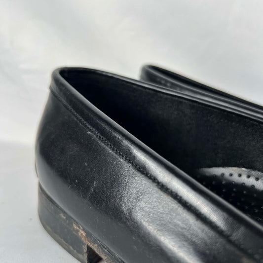 80s Black Leather Tassel Loafers- M's 9, W's 10.5