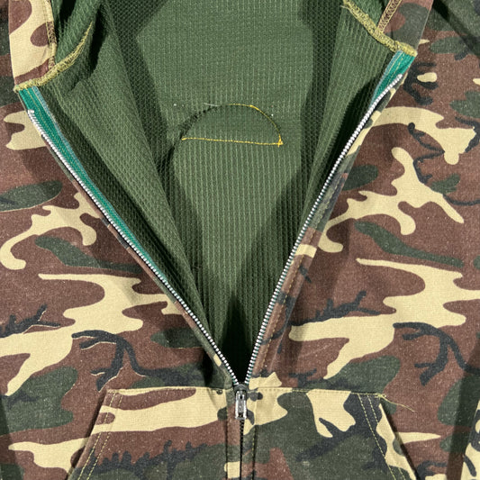 80s Boxy Camo Thermal Lined Zip Up Hoodie- M