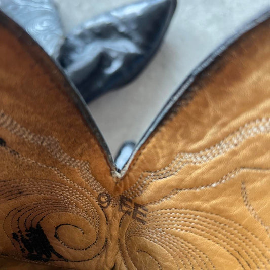 80s Black Ostrich Leather Cowboy Boots- M's 9, W's 10.5