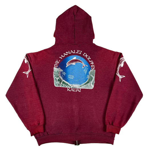 80s Faded Hanalei Dolphin Zip Up Hoodie- M