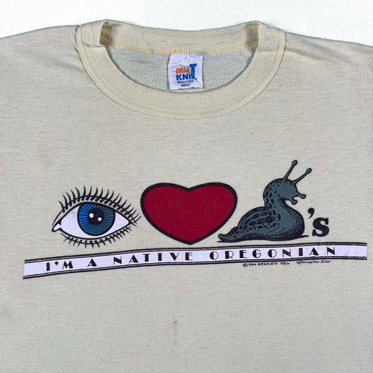 80s Eye Heart Banana Slugs Native Oregonian Tee- S