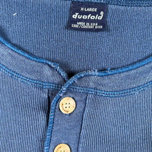 80s Faded Navy Cotton Henley Thermal Shirt- XL
