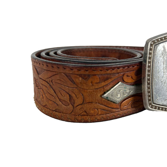 80s Embellished & Silver Plated Leather Belt- 30"-34"