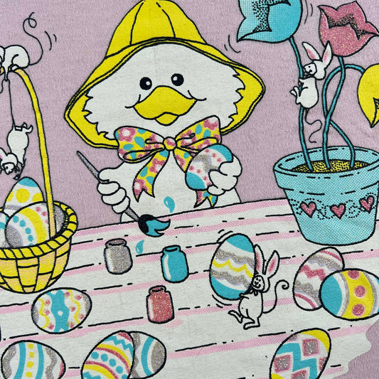 80s Incredibly Cute Duck Painting Eggs Tee- XS