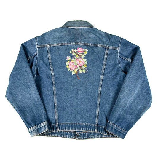 80s Key Floral Embroidered Denim Trucker Jacket- L