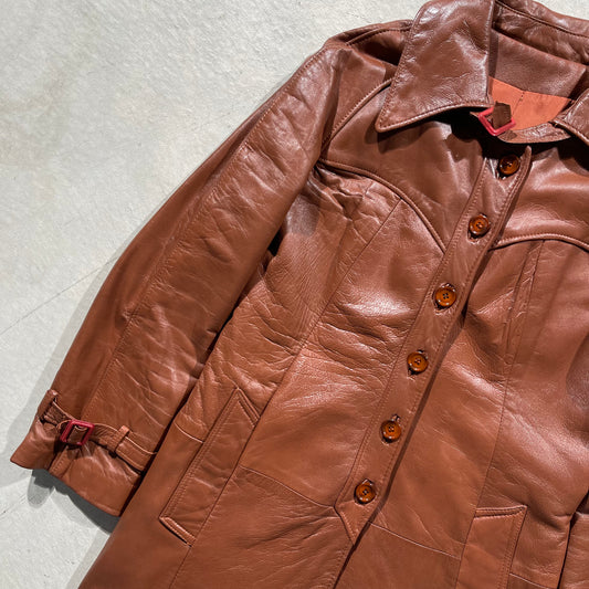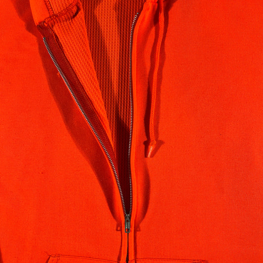 80s Orange Thermal Lined Zip Up Hoodie- L