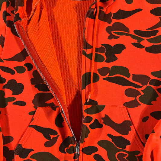 80s Orange Duck Camo Thermal Lined Zip Up Hoodie- S