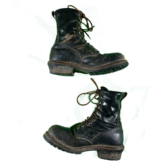 80s Red Wing Patina Black Logger Boots- M's 9.5, W's 11