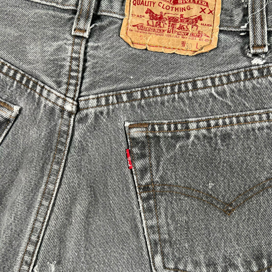80s Sun Faded Black Levi's 501 Cut Off Denim Shorts- 26x3