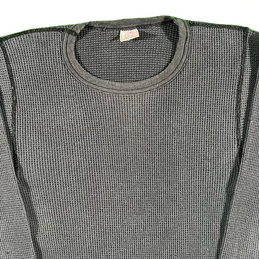 80s Sun Faded Black Waffle Knit Thermal- S