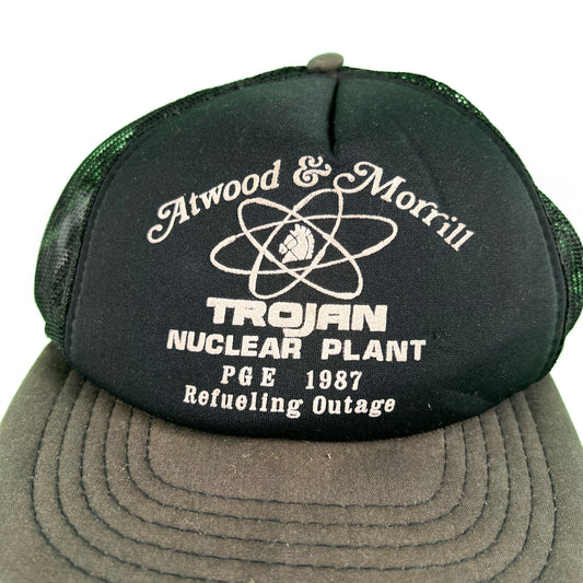 80s Sun Faded Black Trojan Nuclear Trucker Hat-