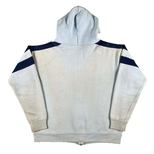 80s Striped Baby Blue Beat Up Zip Up Hoodie- L