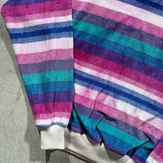 80s Striped Terry Cloth Sweatshirt- S