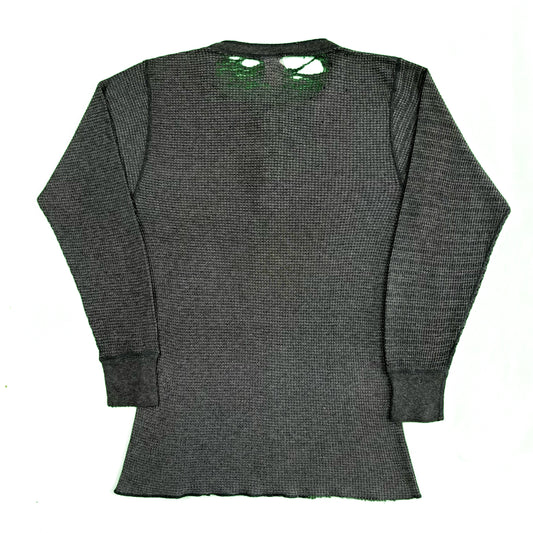 80s Sun Faded Dark Grey Waffle Knit Henley Thermal- L