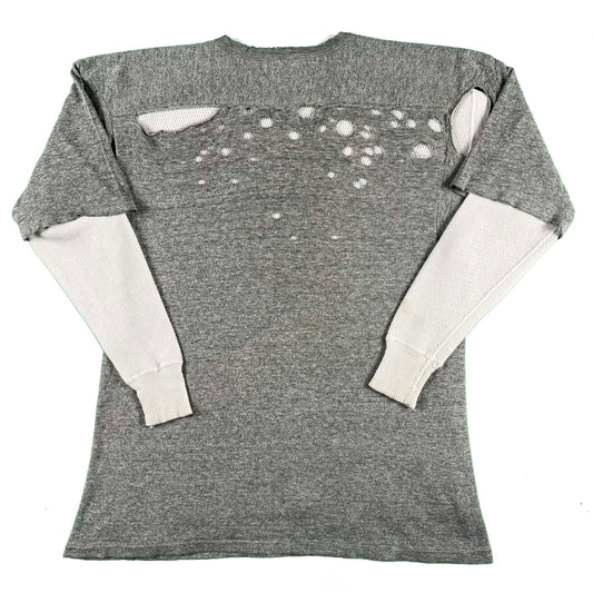80s Thrashed Champion Football Tee & 70s Waffle Knit Thermal- L