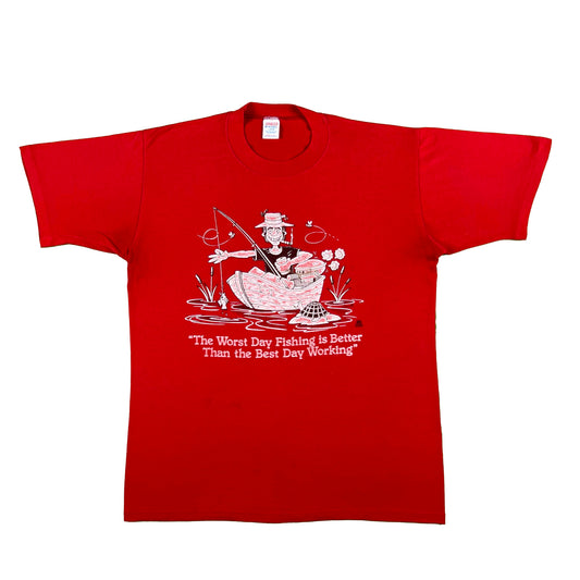 80s The Worst Day of Fishing>Best Day of Working Tee- M
