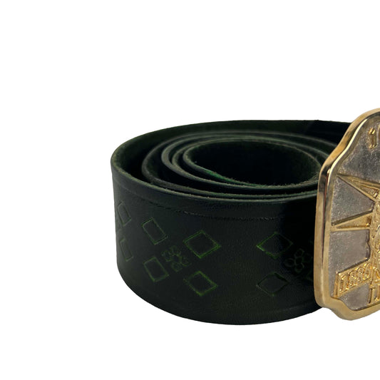 80s Gold Liberty Buckle Green Leather Belt- 34"-38"
