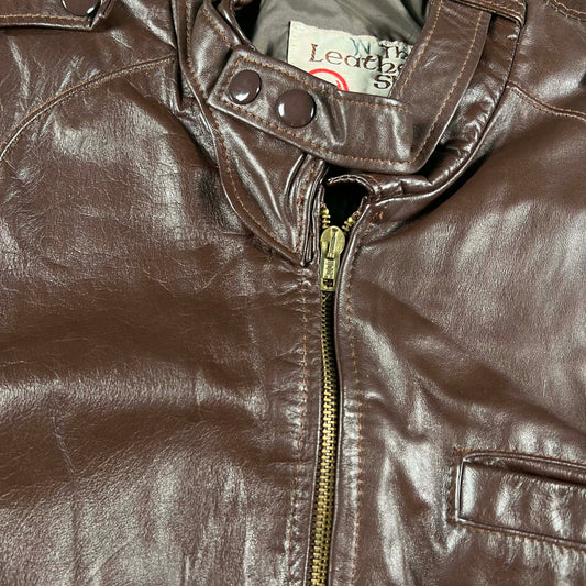 70s Sears Mahogany Brown Leather Cafe Racer Biker Jacket- L