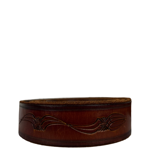 90s Floral Cut Out Brown Leather Belt- 24"-28"
