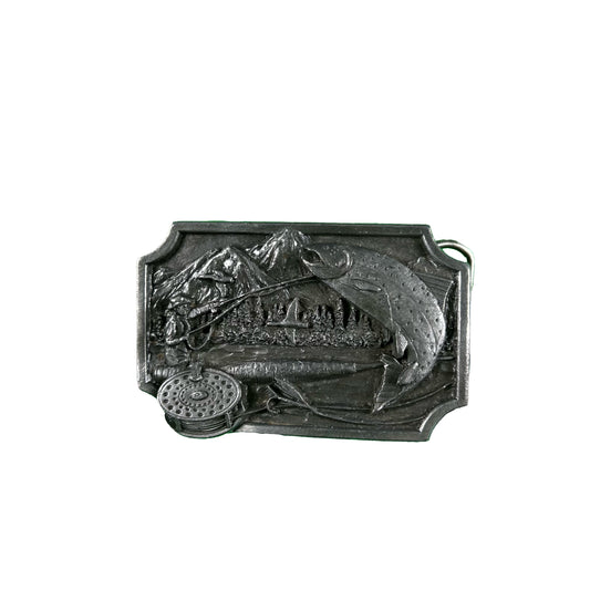 80s Fly Fishing Buckle Bald Eagle Leather Belt- 32"-36"