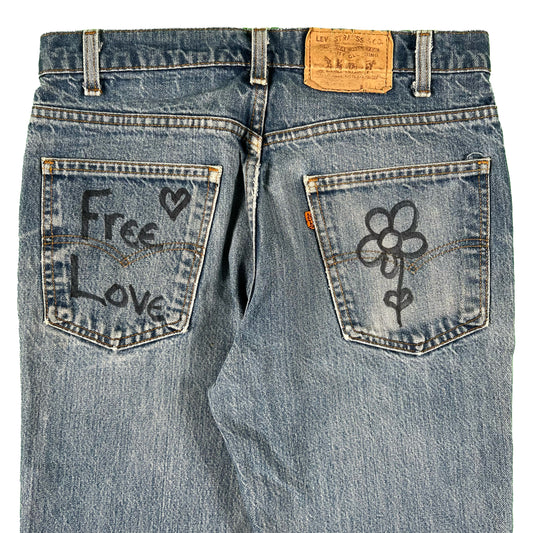 80s Levis 517 'Make Love Not War' Custom Flares- 31x28.5