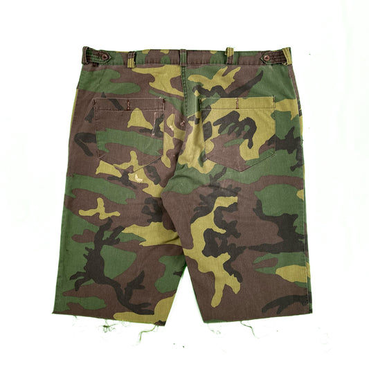 70s Chopped Dark Duck Camo Fatigue Shorts- 32"-35"x11.5