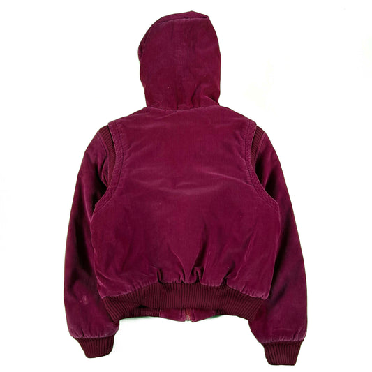 90s Sherpa Lined Magenta Pink Corduroy Hooded Jacket- S