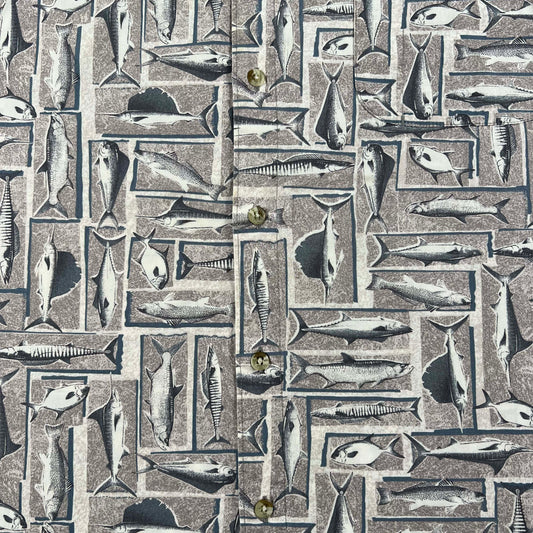 90s/00s Columbia Fish Print Button Up Shirt- XXL