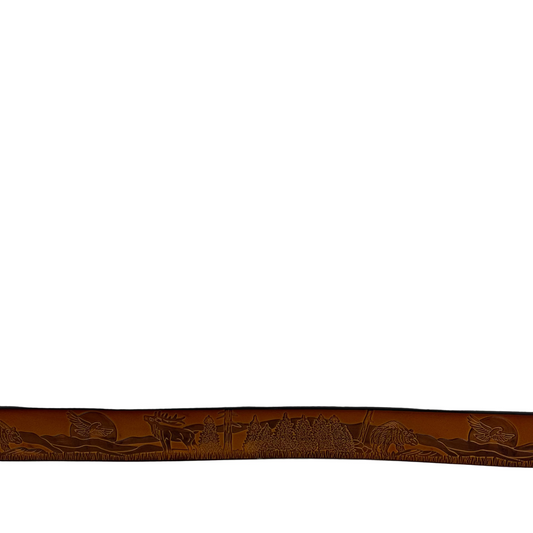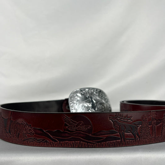 Nature Embellished Dark Tan Leather Belt- 36"-40"